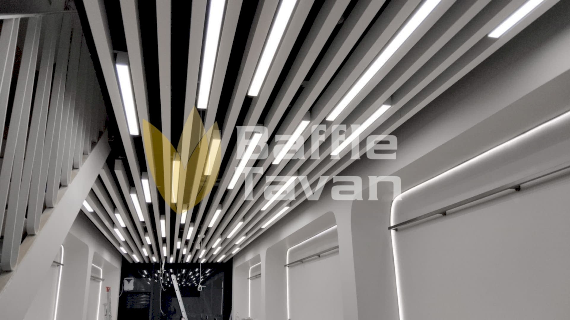 Baffle asma tavan sistemleri, farklı renk ve malzeme seçenekleriyle üretilir. Aydınlatma entegrasyonu için özel olarak tasarlanan bu paneller, mekanın genel tasarım konseptine uygun olarak seçilebilir.