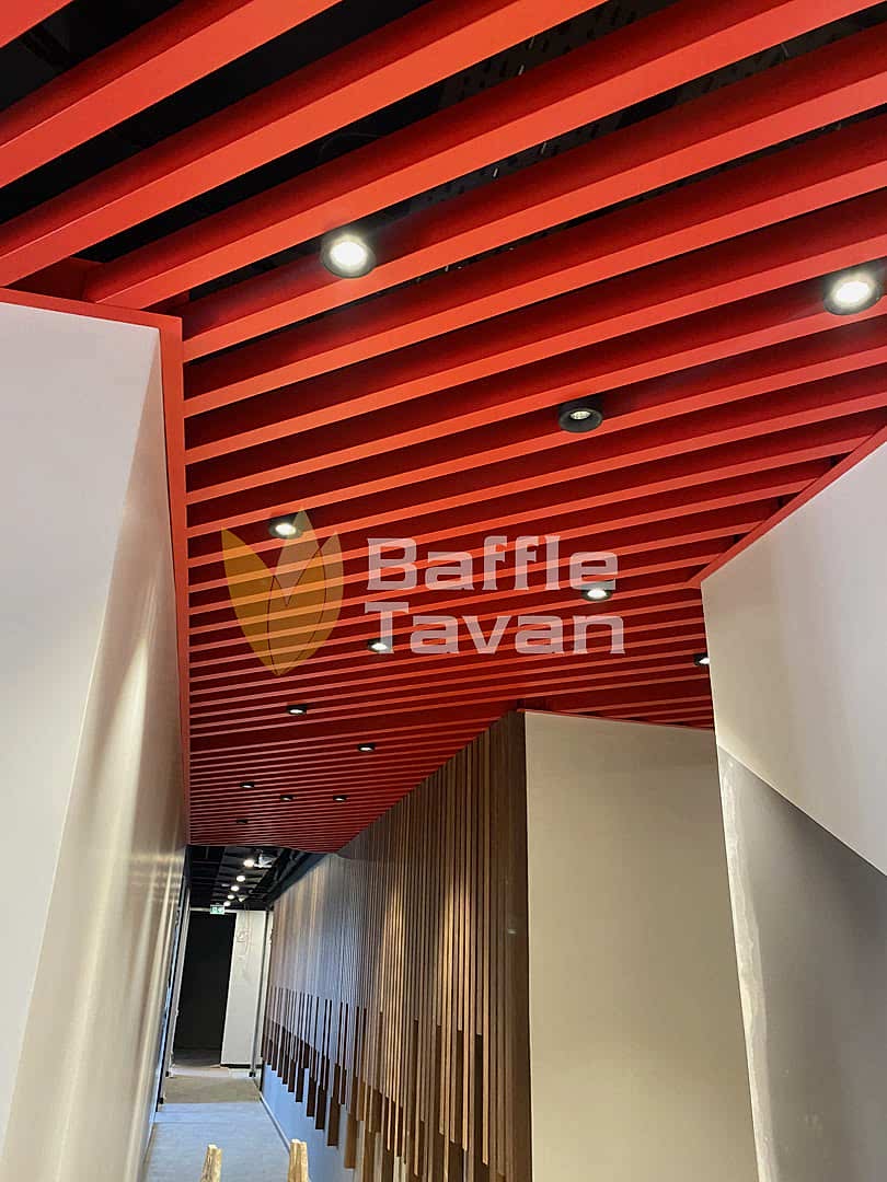 Standart renklerde baffle tavan modelleri geniş bir seçenek sunar: beyaz, gri, siyah, kırmızı, mavi gibi standart renklerde üretilen paneller, tasarıma dinamizm katar.